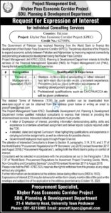Find Khyber Pass Economic Corridor Jobs 2025 KPEC Apply Online for Planning & Development Department KPK Jobs named as (Financial Management Specialist (FMS)) for which candidates possessing qualification Master’s in Finance and Accounting or other relevant field with more than seven years of relevant experience required to apply but preference will be given to those having prior experience of handing development projects or degrees like CA/CPA/ACCA. Applicants meeting criteria should apply by submitting detailed CV to the following address before the last date 15th October 2025.